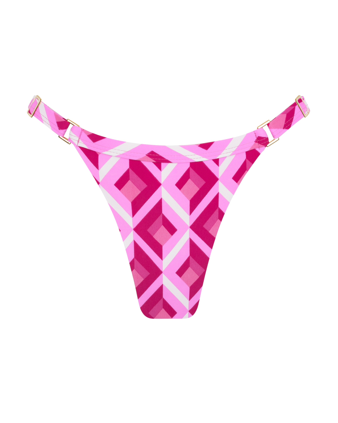 Calcinha com lateral de regulagem e recorte empina bumbum na parte de trás. A peça tem fino acabamento e costuras invisíveis.