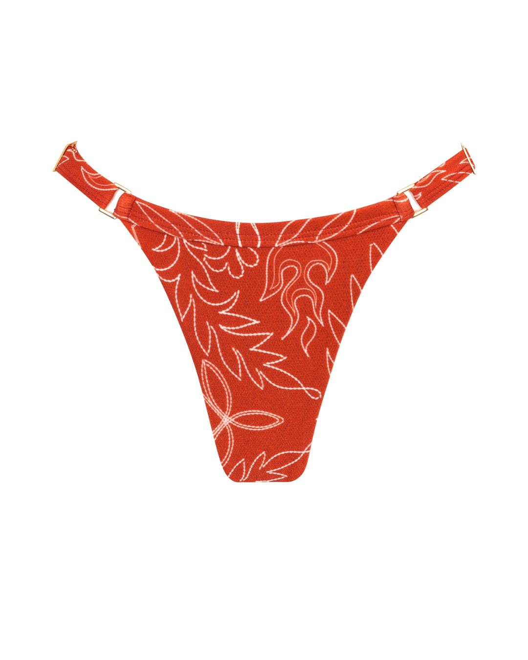 Calcinha com lateral de regulagem e recorte empina bumbum na parte de trás. A peça tem fino acabamento e costuras invisíveis.
