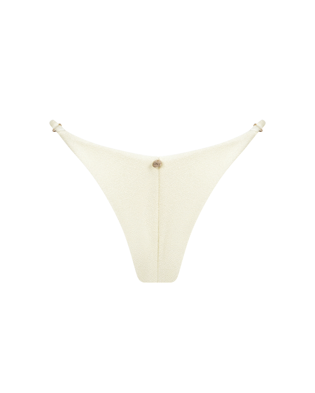 Calcinha com lateral de regulagem, detalhes em metal e recorte empina bumbum na parte de trás. A peça tem fino acabamento e costuras invisíveis.