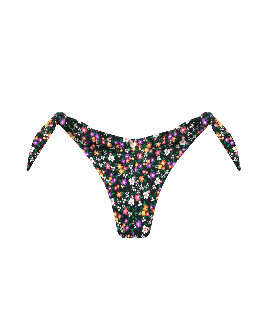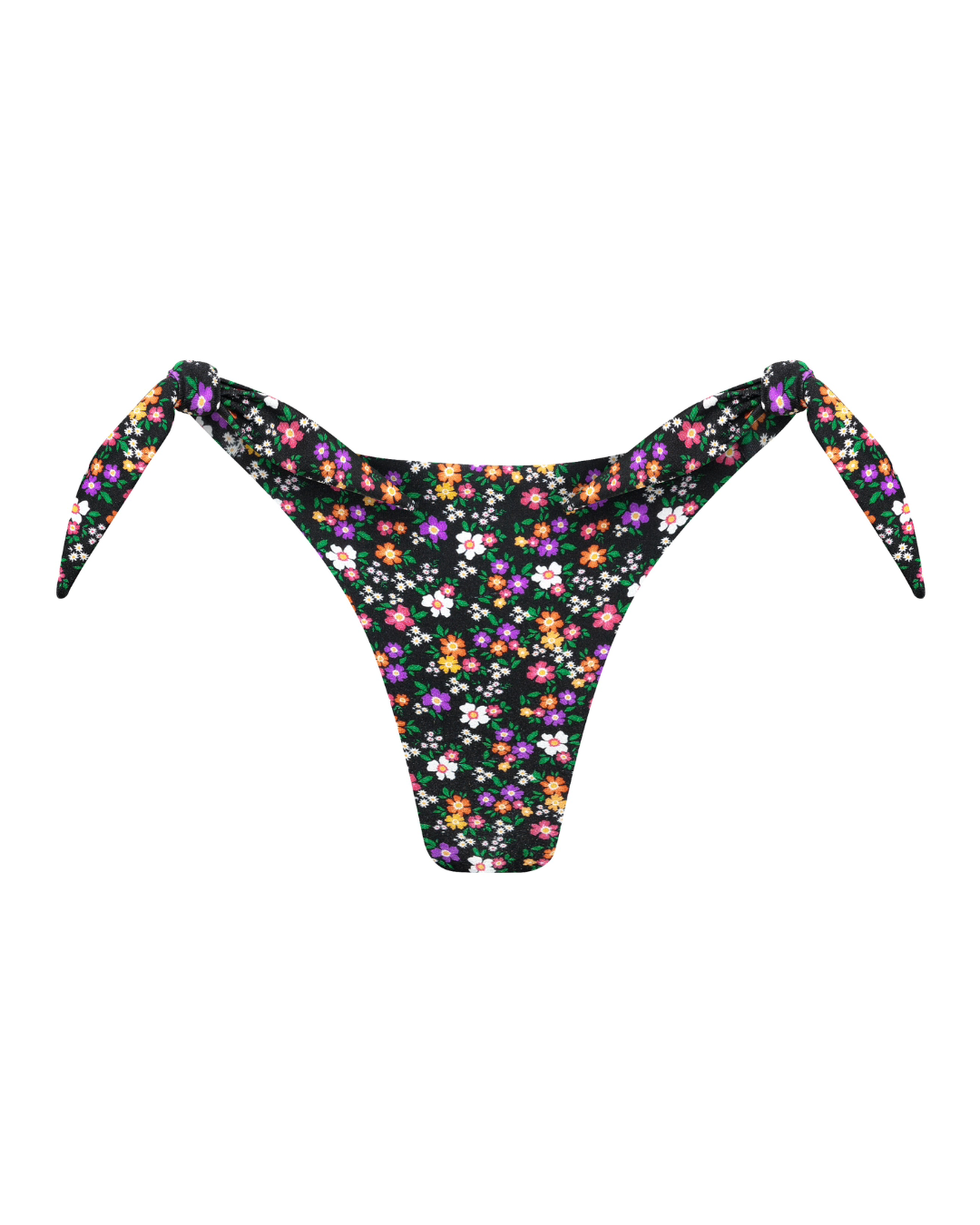 Calcinha com dois laços grossos laterais que acompanham o corte. Não possui elástico interno nas partes de amarrar, por isso se ajusta bem ao corpo, não deixando marcada a cintura e o culote. Possui recorte empina bumbum, fino acabamento e costuras invisíveis.