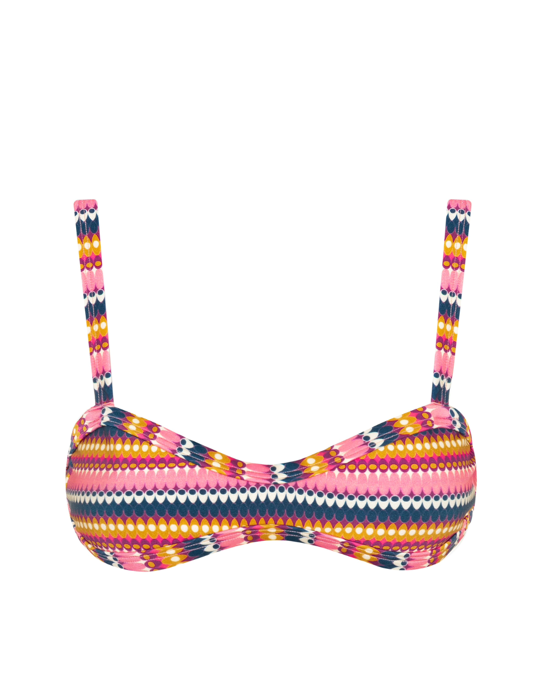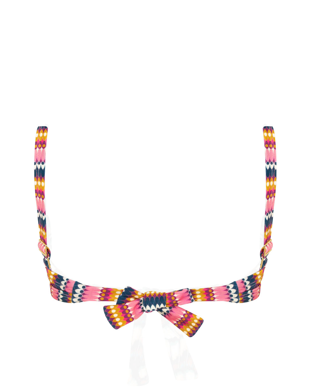 Top inteiro com a parte frontal menor, viés e alças reguláveis e finas.