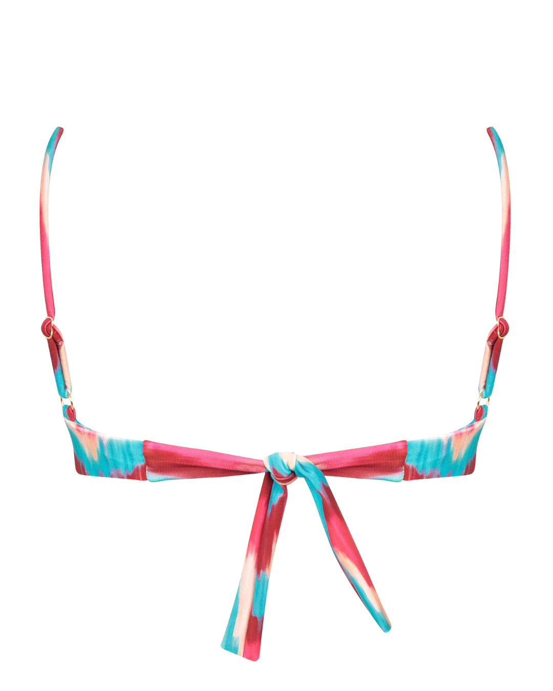 O nosso sutiã aro V ainda tem amarração nas costas e laterais mais largas que ajudam a aproximar os seios e criam um efeito lindo no decote. Esse é o único biquíni com aro e bojo da Cali for Sun.
