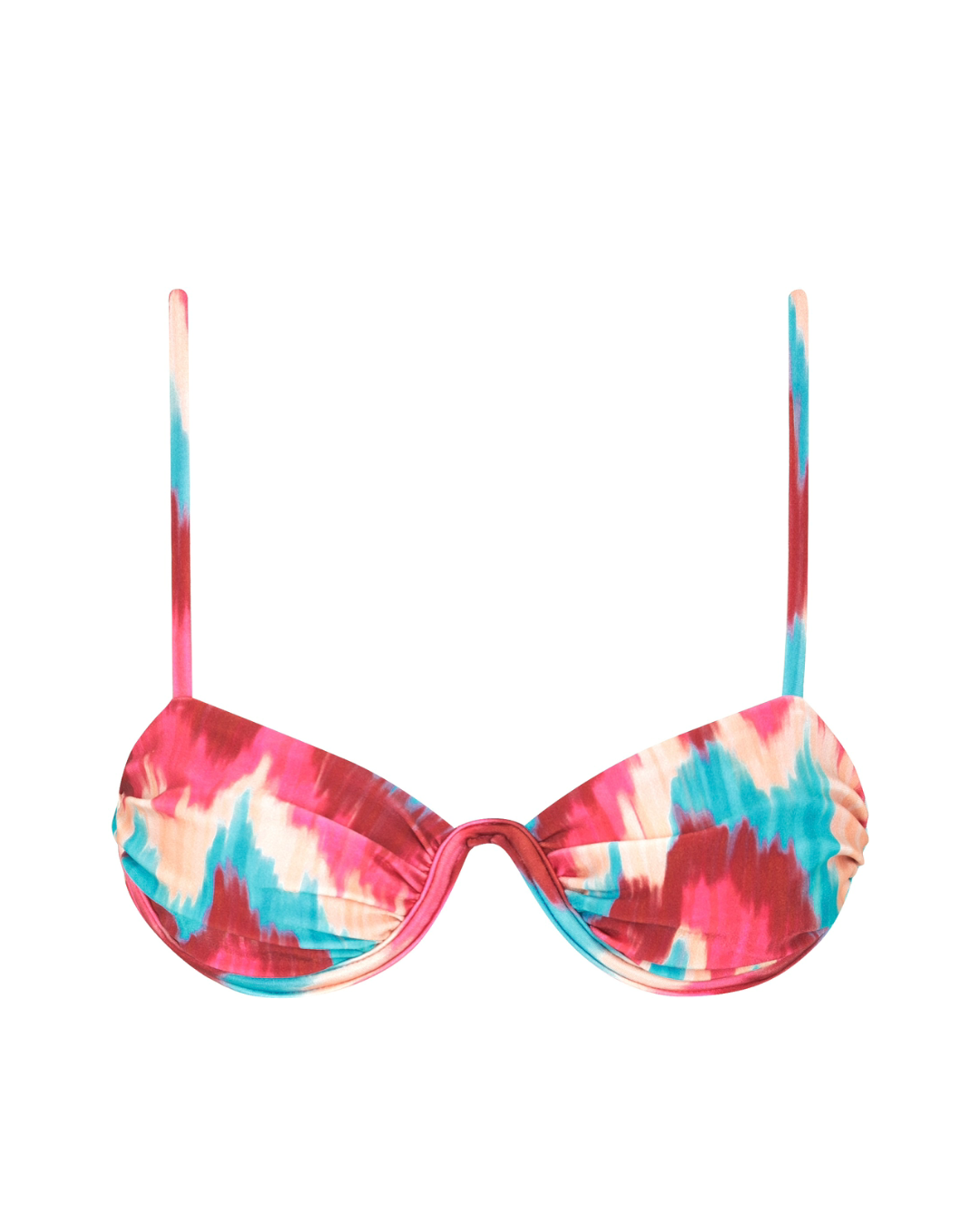 O sutiã aro inteiro da Cali é uma peça que não tem nada de básica. Suas alças são mais grossas e ajustáveis por amarração nos ombros, o que faz desse modelo o biquíni ideal para quem precisa de bastante suporte nos seios.