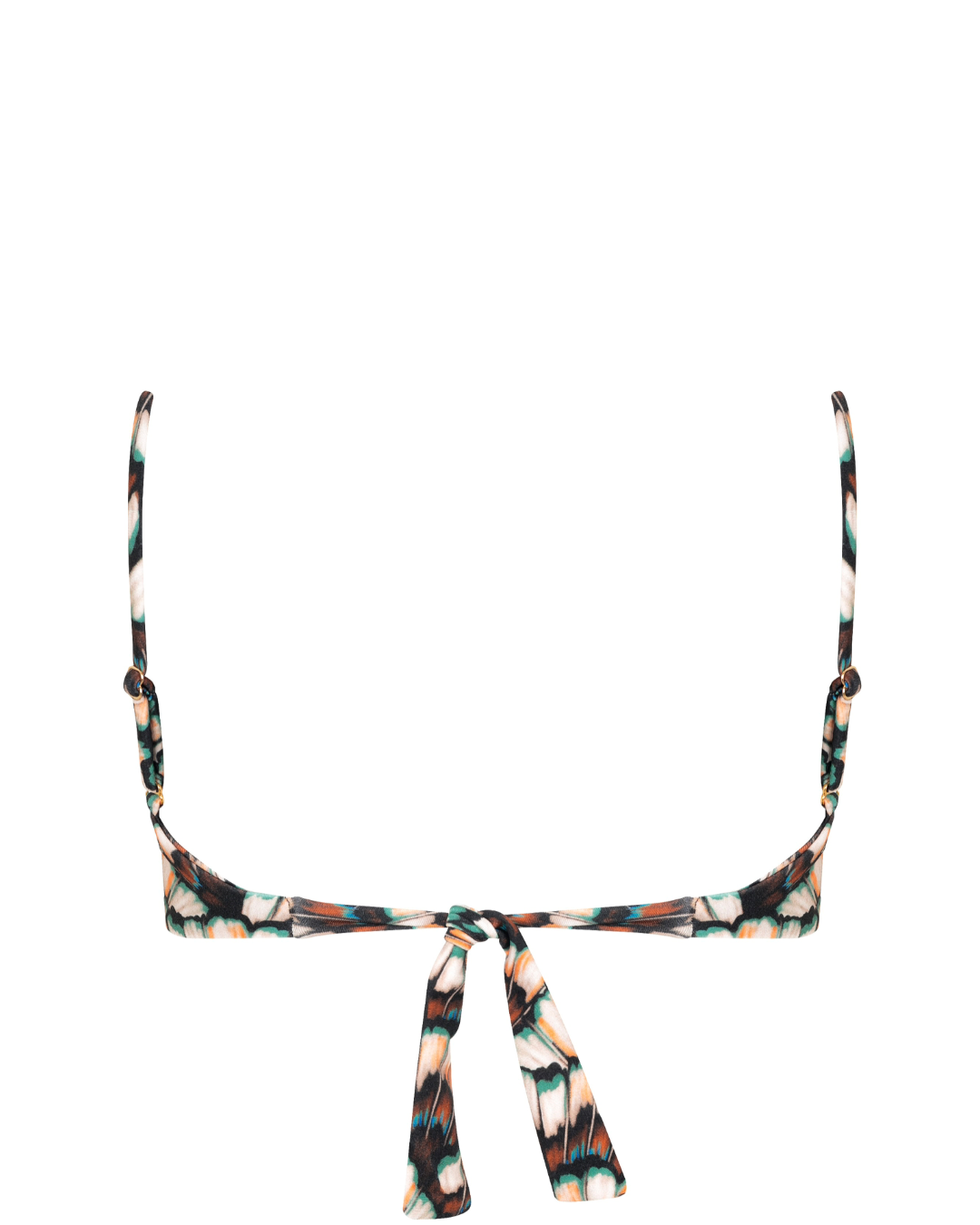 O nosso sutiã aro V ainda tem amarração nas costas e laterais mais largas que ajudam a aproximar os seios e criam um efeito lindo no decote. Esse é o único biquíni com aro e bojo da Cali for Sun.