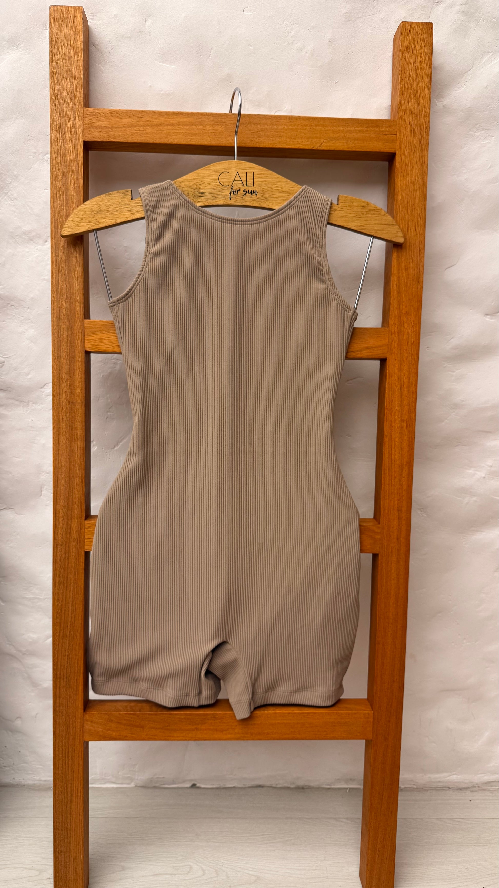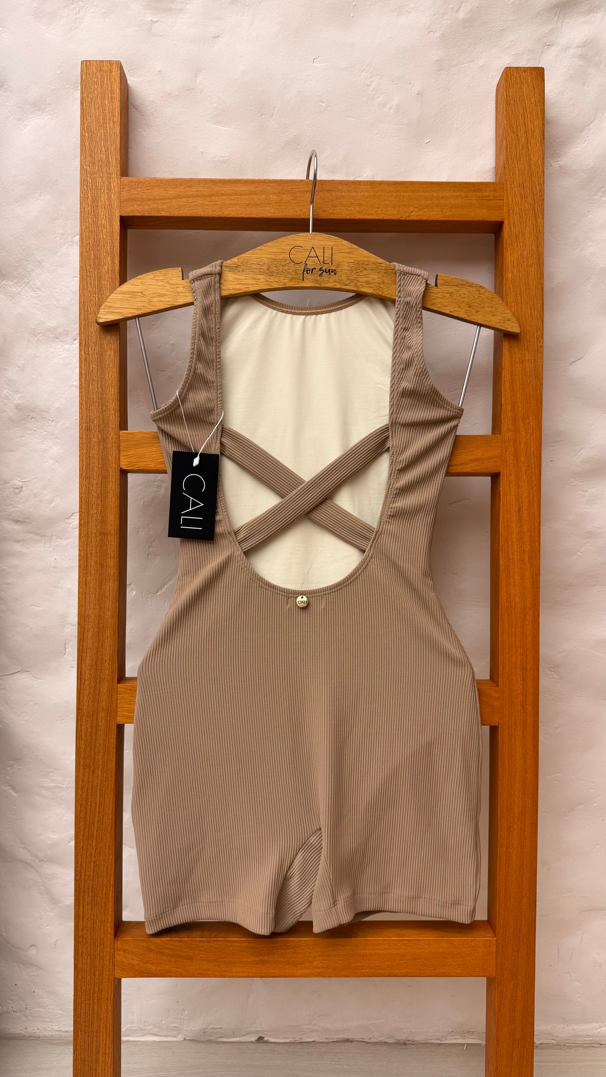 Macaquinho canelado com detalhe nas costa e forro interno reforçado. Tecido confortável que modela o corpo.