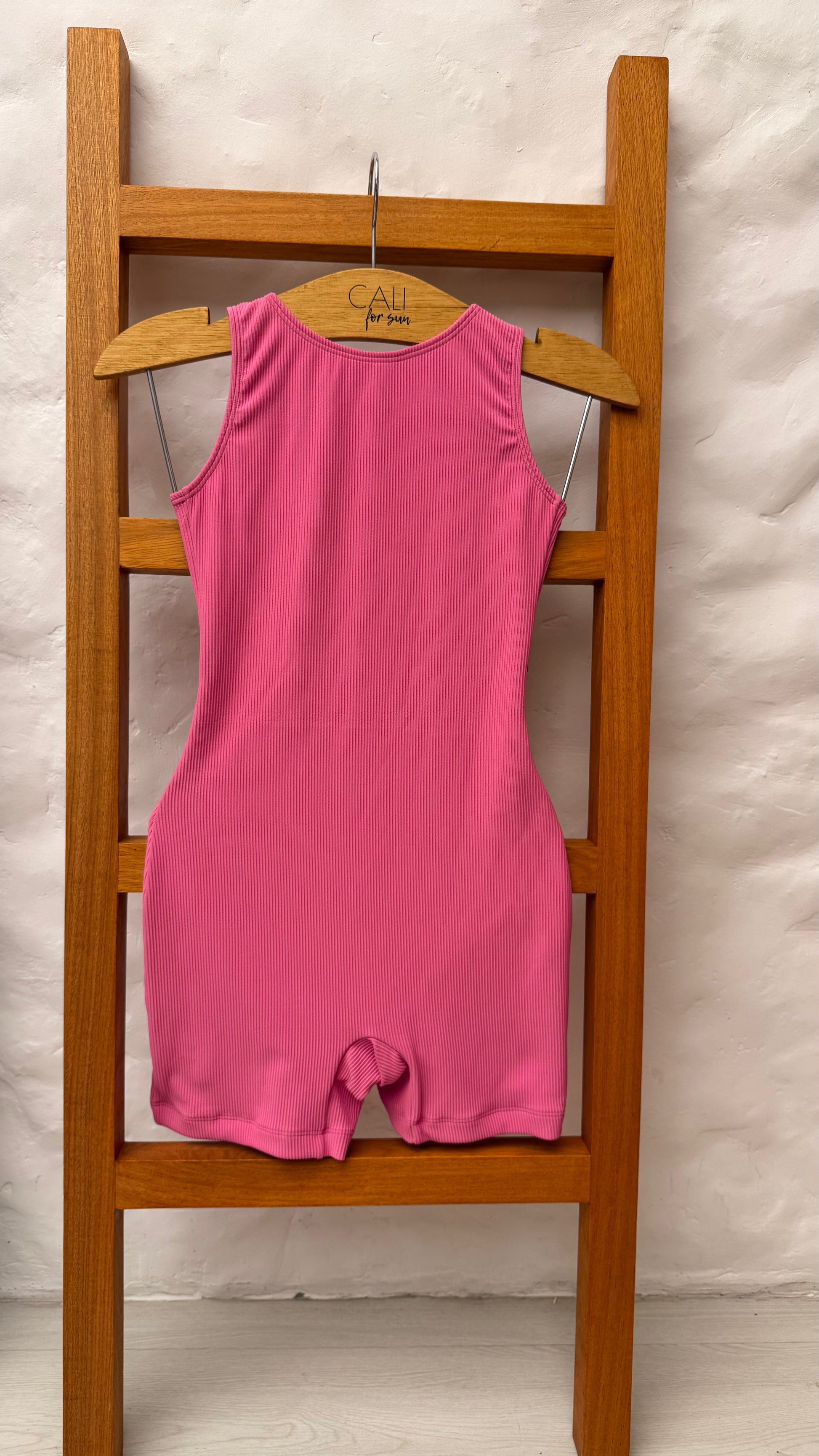 Macaquinho canelado com detalhe nas costa e forro interno reforçado. Tecido confortável que modela o corpo.