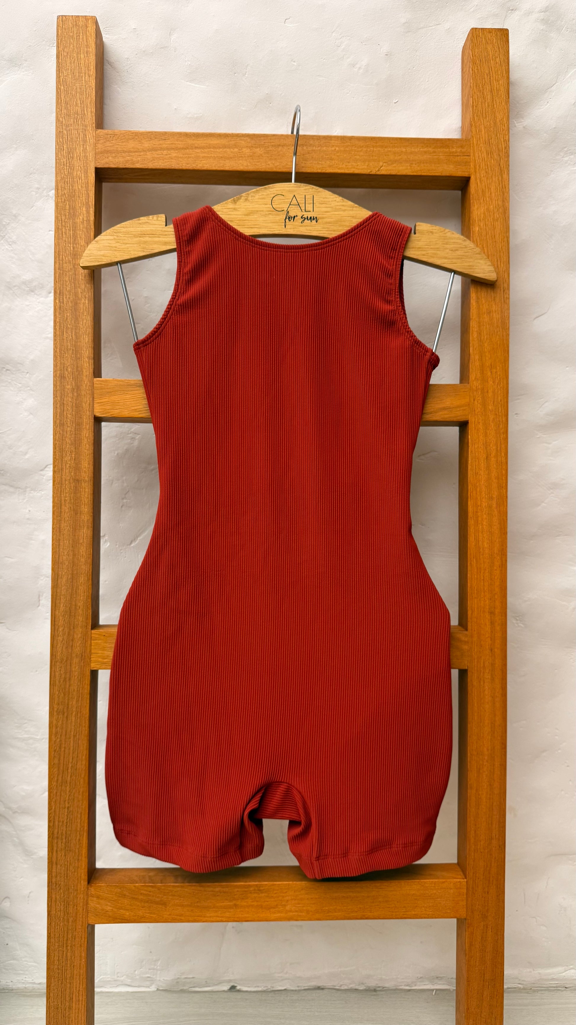 Macaquinho canelado com detalhe nas costa e forro interno reforçado. Tecido confortável que modela o corpo.