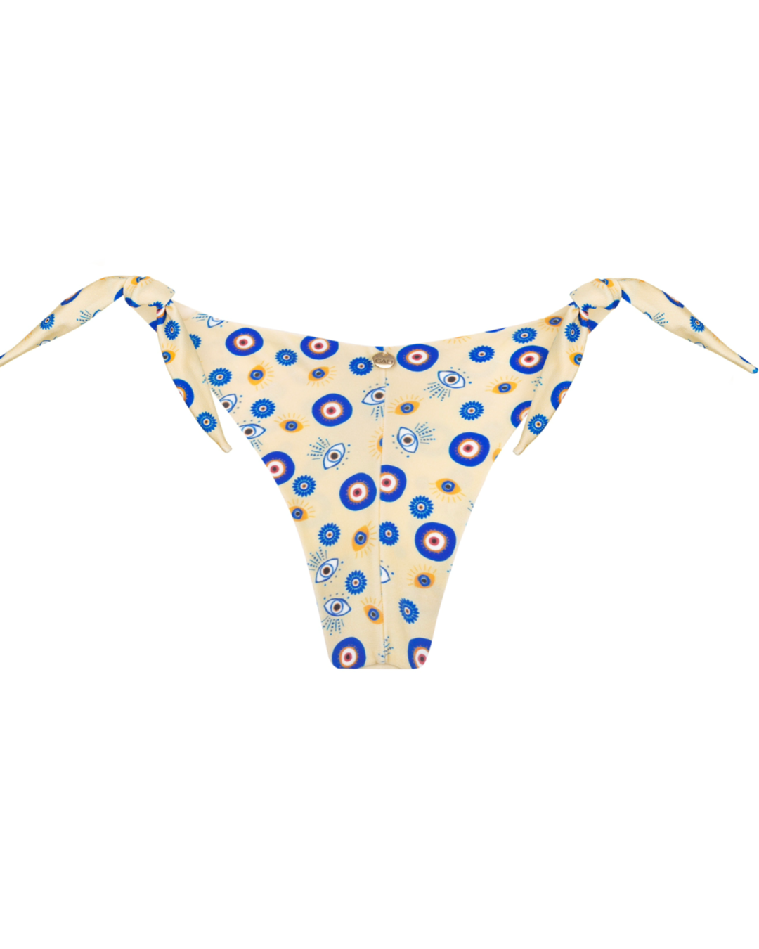 Calcinha com dois laços grossos laterais que acompanham o corte. Não possui elástico interno nas partes de amarrar, por isso se ajusta bem ao corpo, não deixando marcada a cintura e o culote. Possui recorte empina bumbum, fino acabamento e costuras invisíveis.