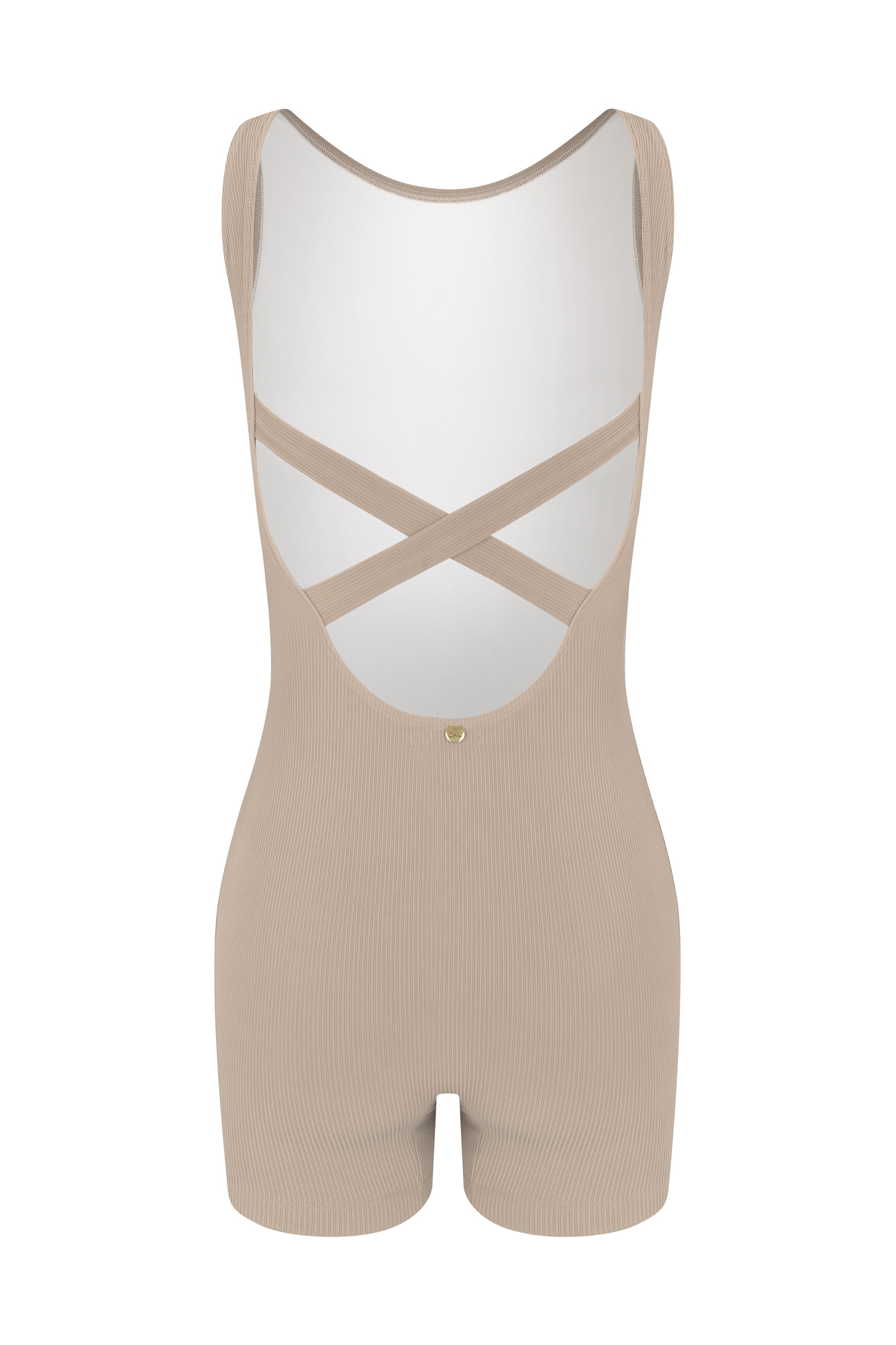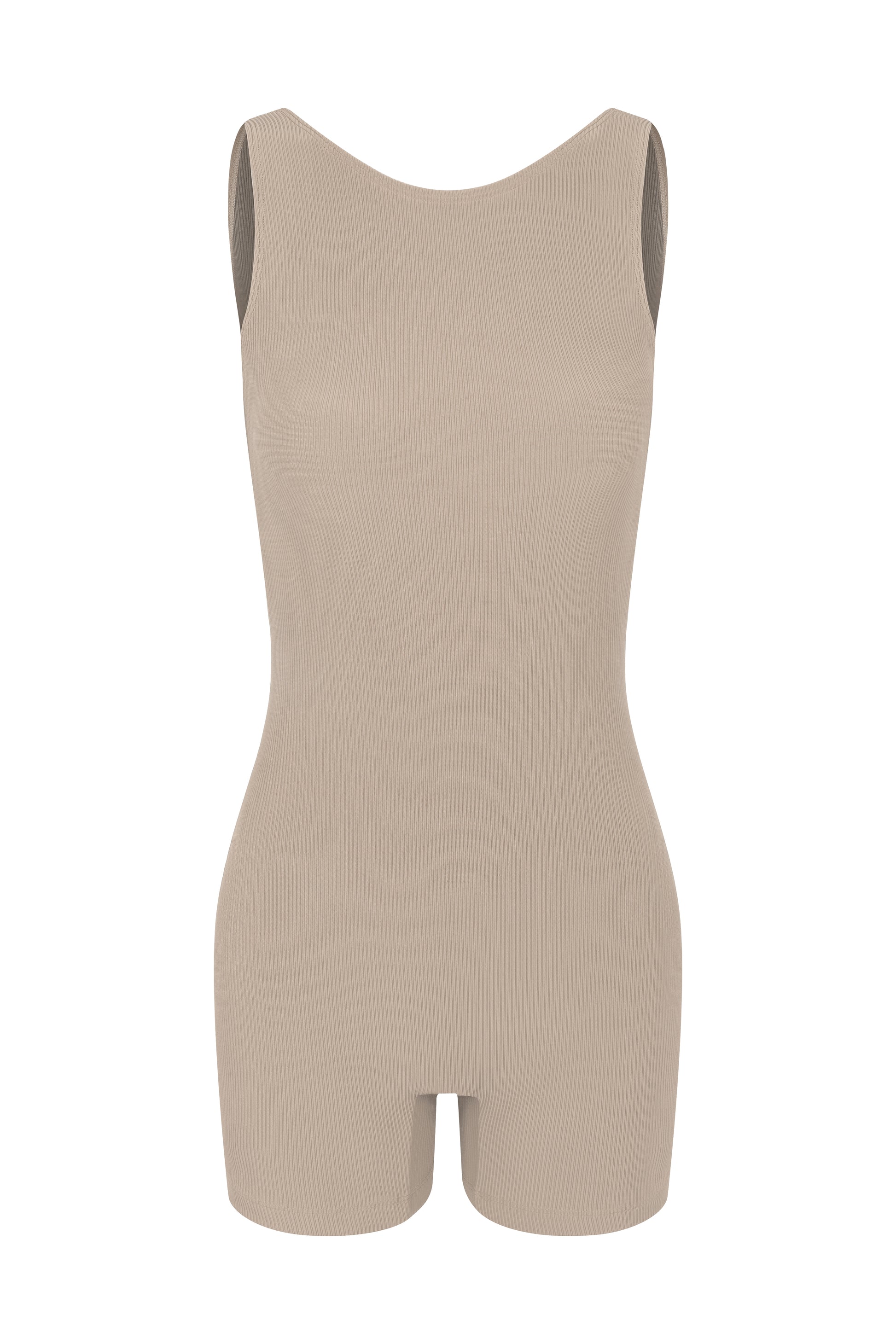 Macaquinho canelado com detalhe nas costa e forro interno reforçado. Tecido confortável que modela o corpo.