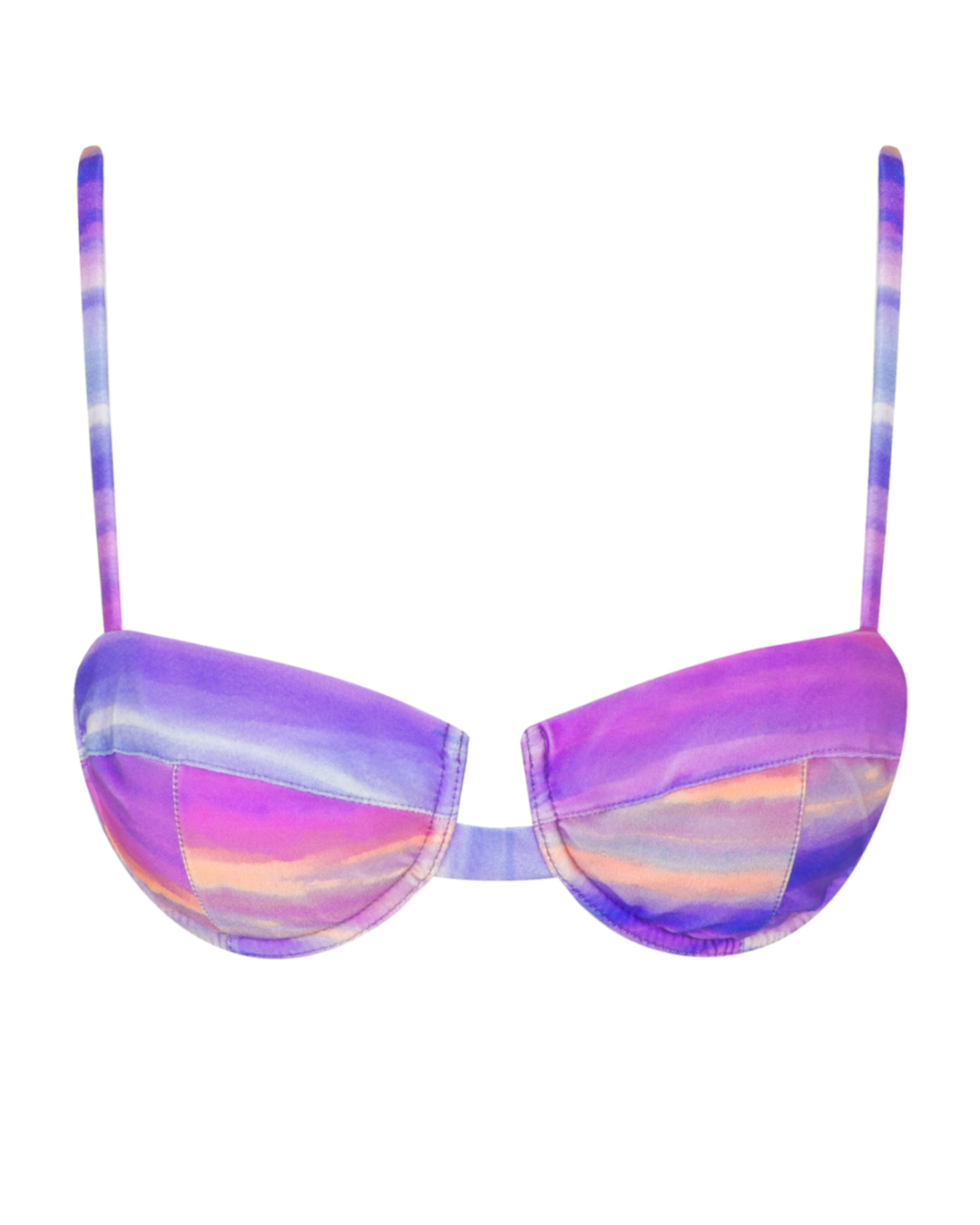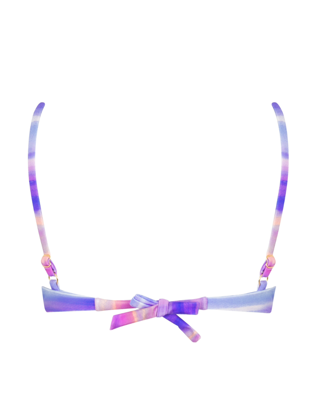 O sutiã aro simples da Cali for Sun tem alças finas reguláveis e as taças não têm abertura para encaixar bojo. O ajuste nas costas é feito com amarração para encaixar no corpo na sua medida exata.