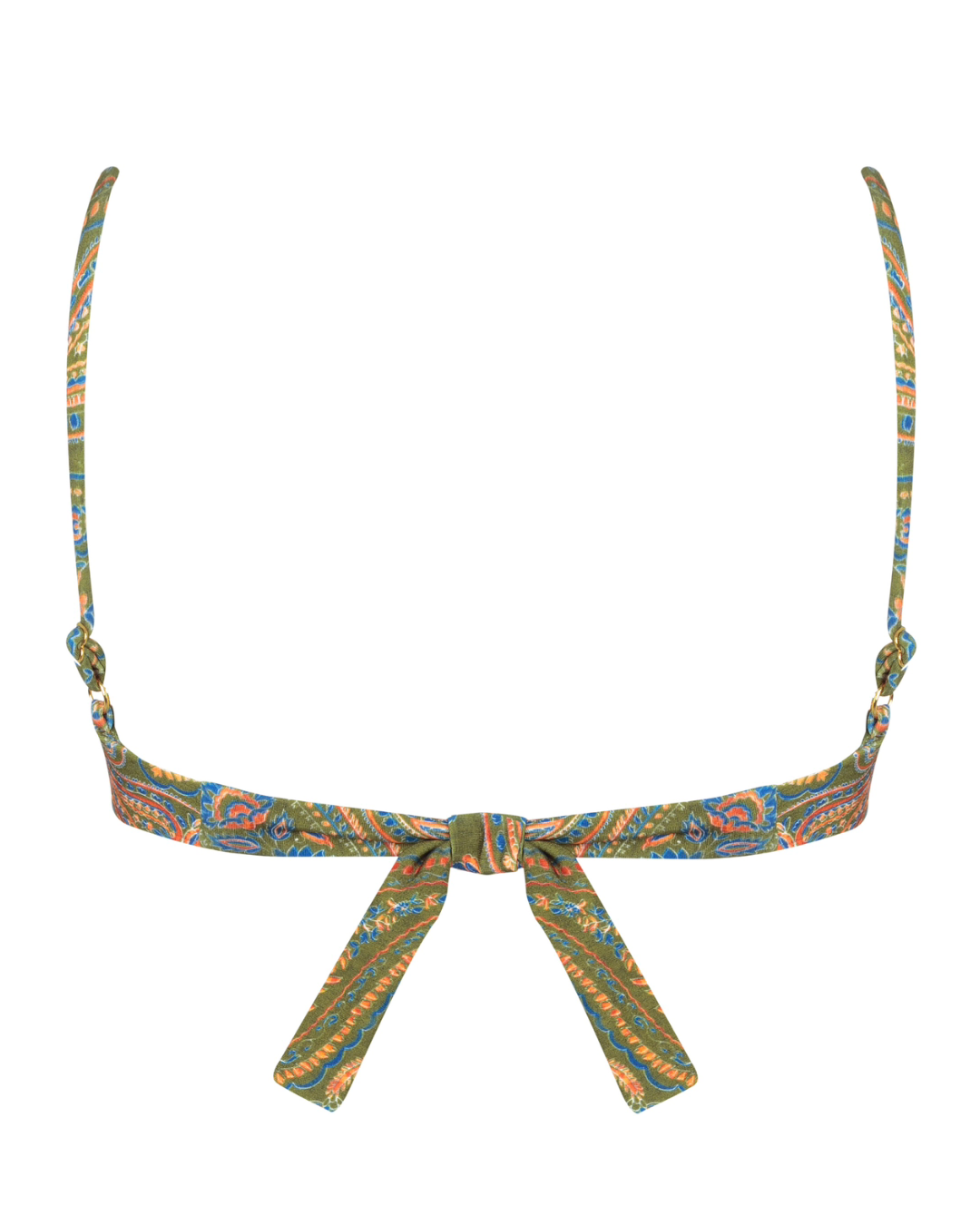 O nosso sutiã aro V ainda tem amarração nas costas e laterais mais largas que ajudam a aproximar os seios e criam um efeito lindo no decote. Esse é o único biquíni com aro e bojo da Cali for Sun.