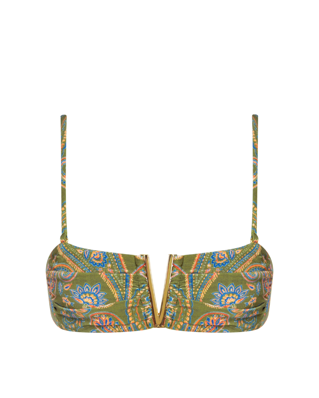O biquíni com aro V virou tendência em 2021 e segue muito querido por sua modelagem que realça os seios, como o modelo anterior. No entanto, as principais diferenças entre o biquíni aro V e o biquíni meia-taça são o formato do bojo e a presença de um aro — em V, claro — para valorizar a região do busto.