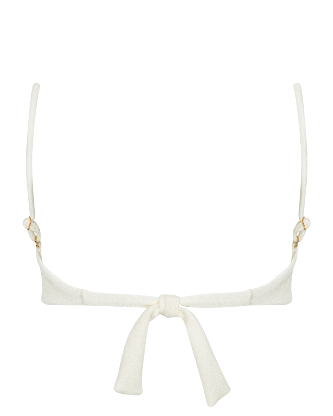O nosso sutiã aro V ainda tem amarração nas costas e laterais mais largas que ajudam a aproximar os seios e criam um efeito lindo no decote. Esse é o único biquíni com aro e bojo da Cali for Sun.