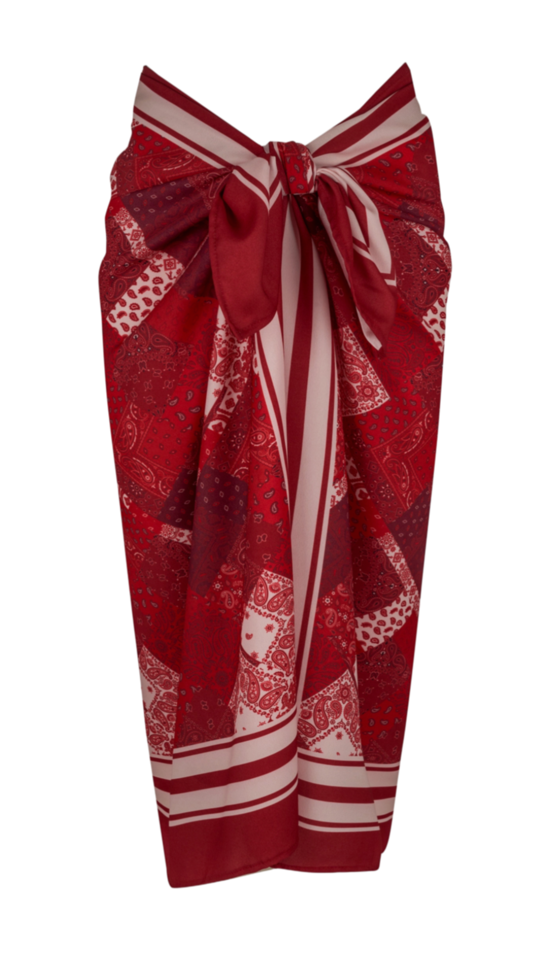 Lenço de praia que pode ser amarrado na cintura de várias formas.