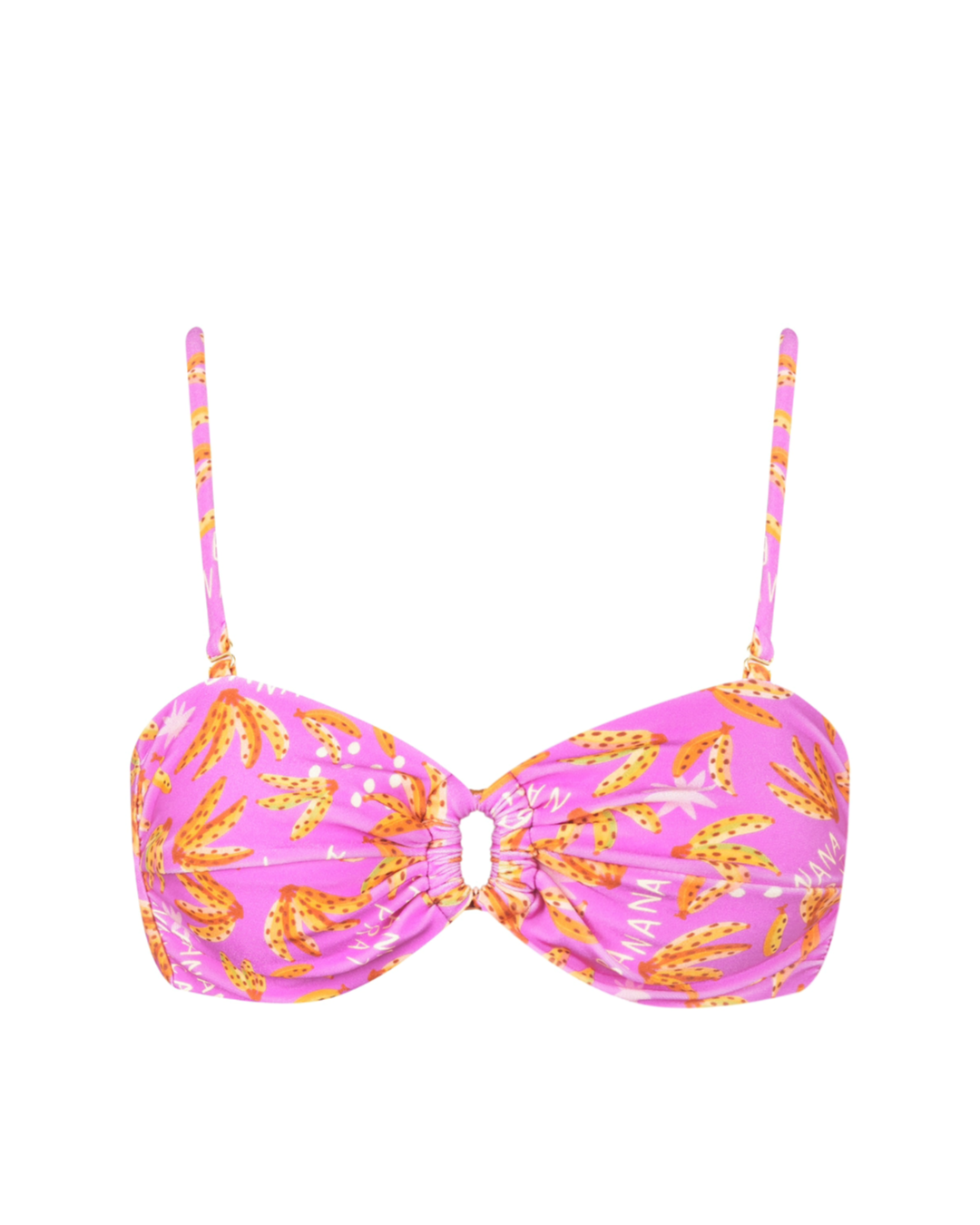 A característica mais marcante desse biquíni é a presença de apenas um aro que sustenta e une as duas taças, contornando toda a parte de baixo do busto.