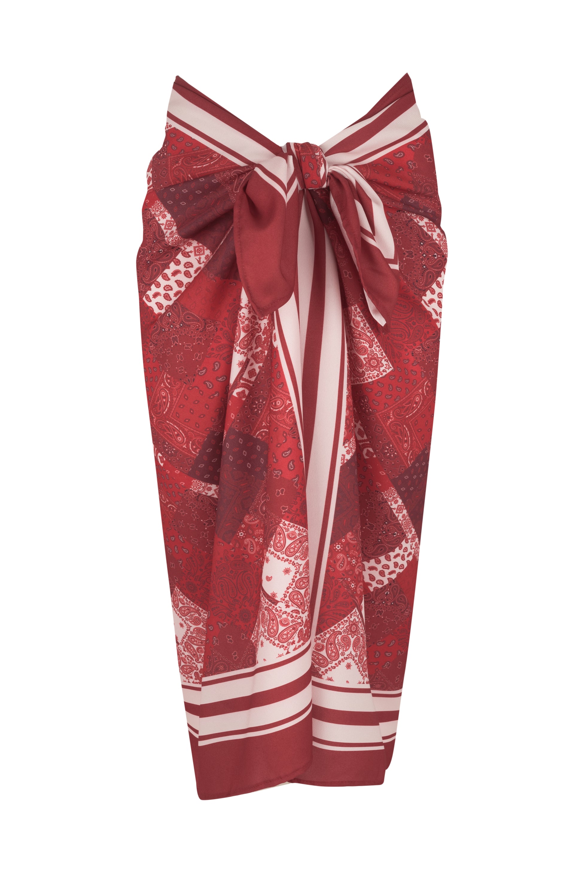 Lenço de praia que pode ser amarrado na cintura de várias formas.