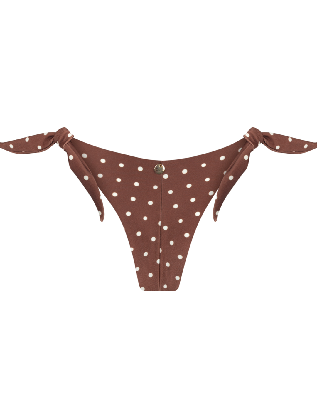 Calcinha com dois laços grossos laterais que acompanham o corte. Não possui elástico interno nas partes de amarrar, por isso se ajusta bem ao corpo, não deixando marcada a cintura e o culote. Possui recorte empina bumbum, fino acabamento e costuras invisíveis.