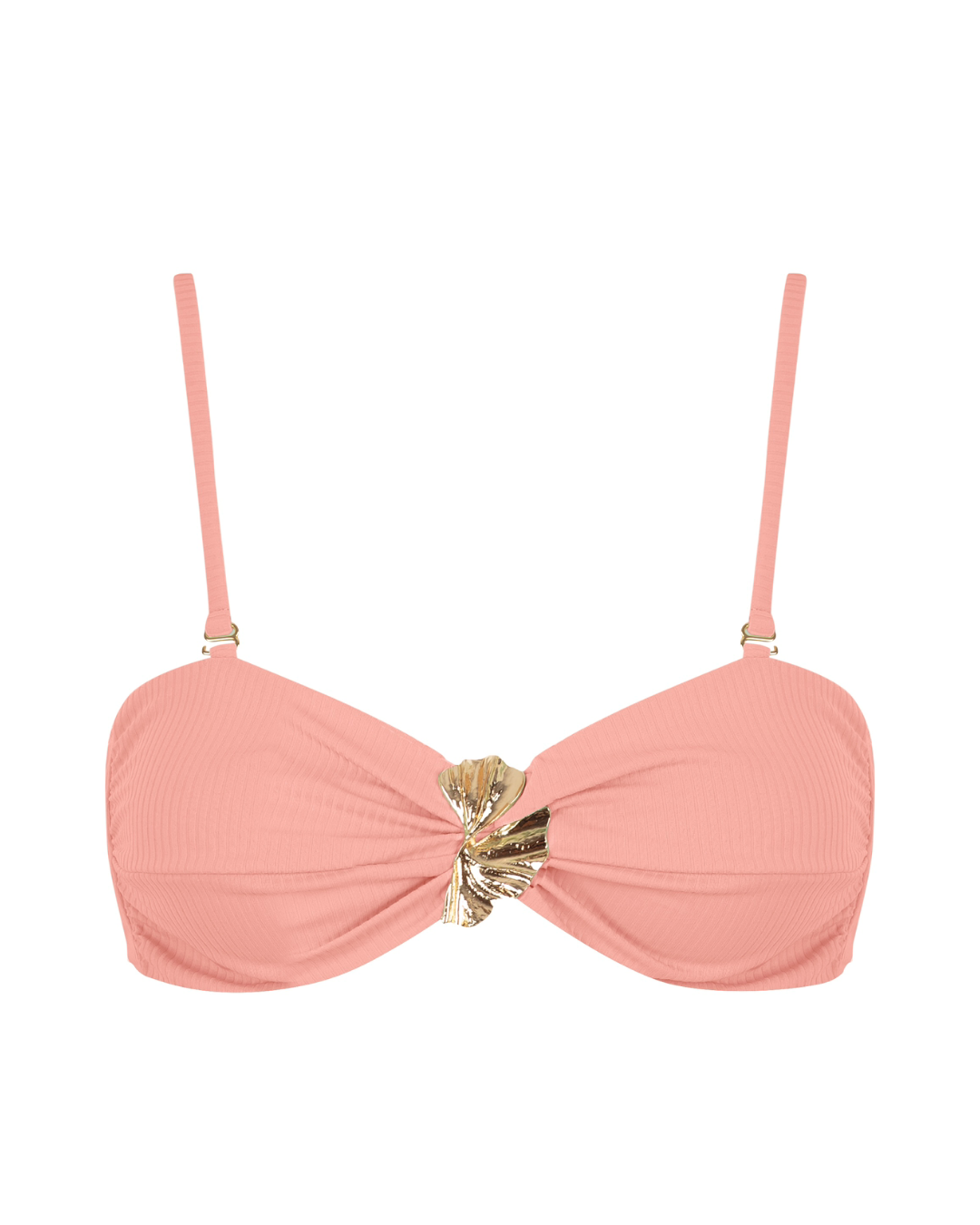 A característica mais marcante desse biquíni é a presença de apenas um aro que sustenta e une as duas taças, contornando toda a parte de baixo do busto.