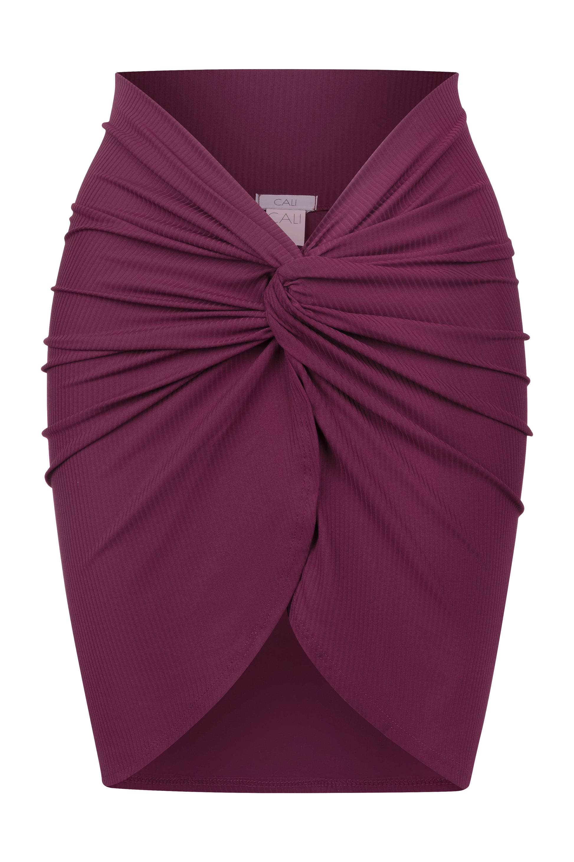 Saia curta fixa transpassada na frente. O produto é feito do mesmo material dos biquínis da estampa correspondente, sendo leve mas sem transparências.