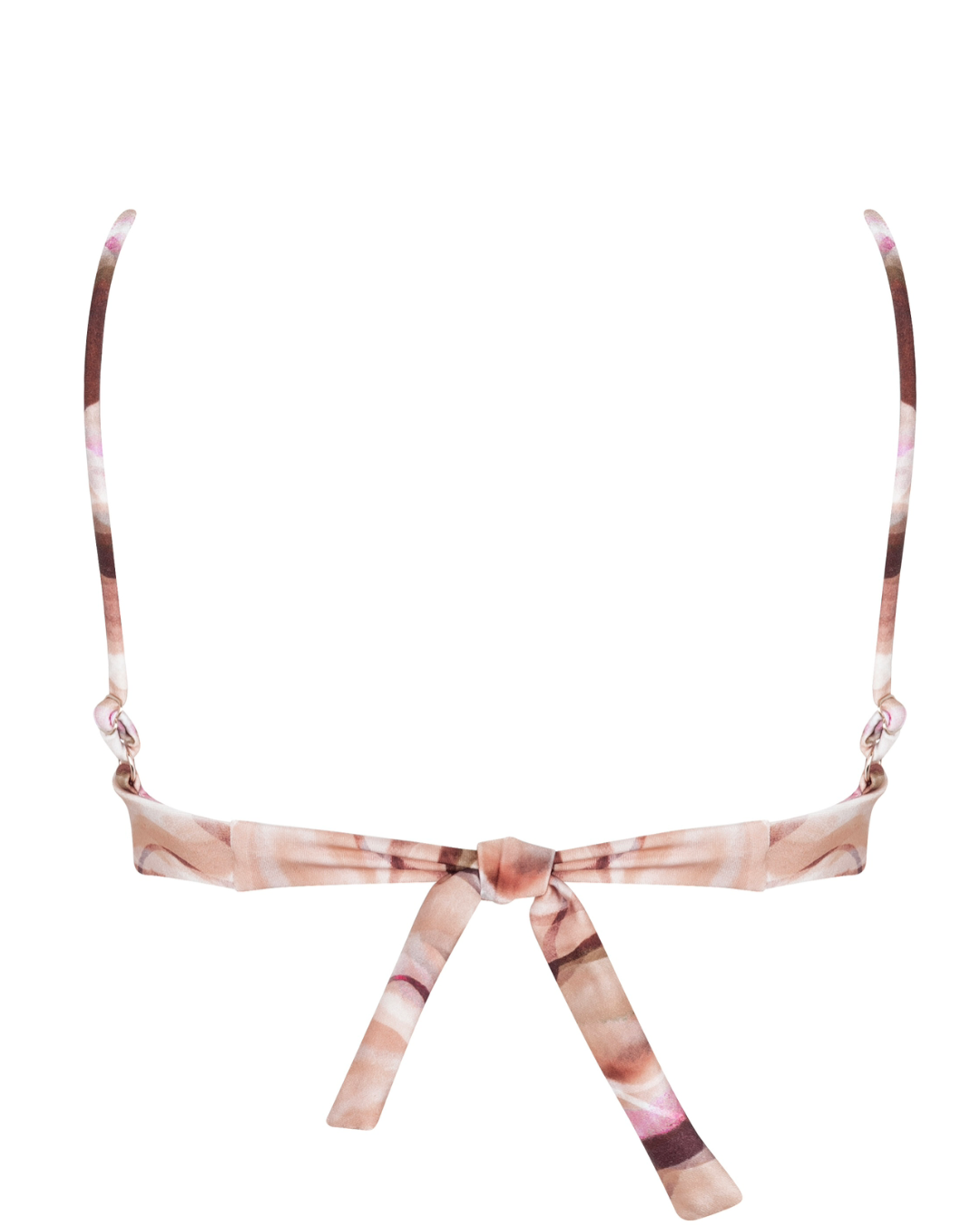 O sutiã aro simples da Cali for Sun tem alças finas reguláveis e as taças não têm abertura para encaixar bojo. O ajuste nas costas é feito com amarração para encaixar no corpo na sua medida exata.