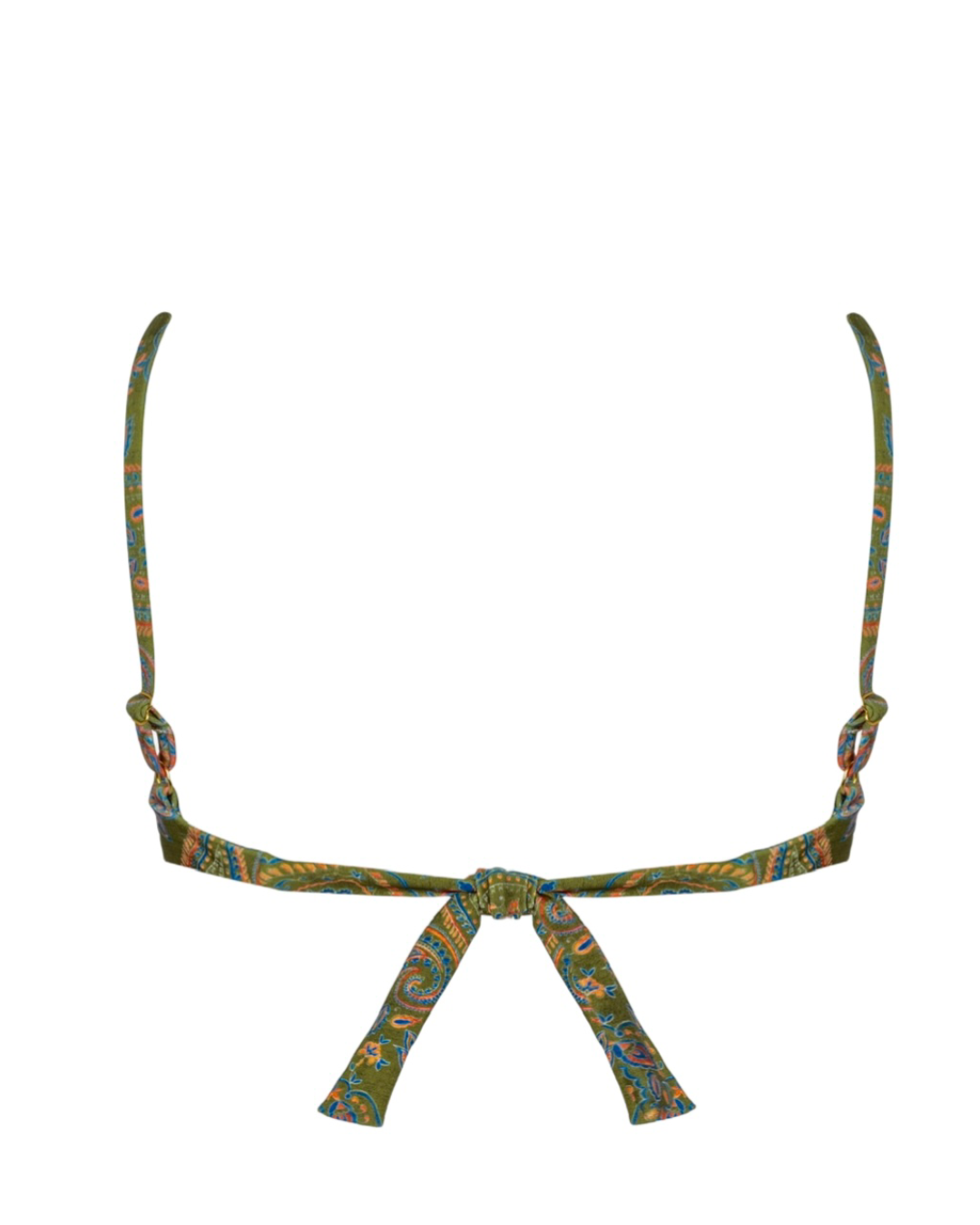 O nosso sutiã aro V ainda tem amarração nas costas e laterais mais largas que ajudam a aproximar os seios e criam um efeito lindo no decote. Esse é o único biquíni com aro e bojo da Cali for Sun.