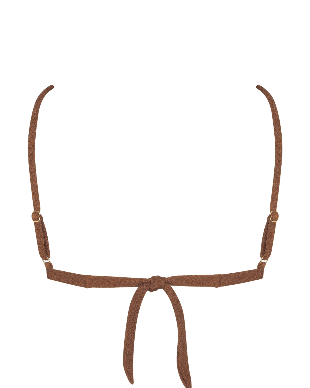 Top com alças reguláveis, com metal na parte frontal e amarração nas costas, fino acabamento e costuras invisíveis na laterais, garantindo maior conforto durante o uso.