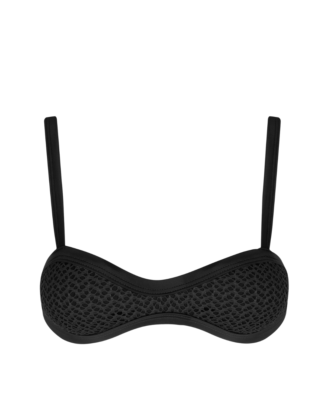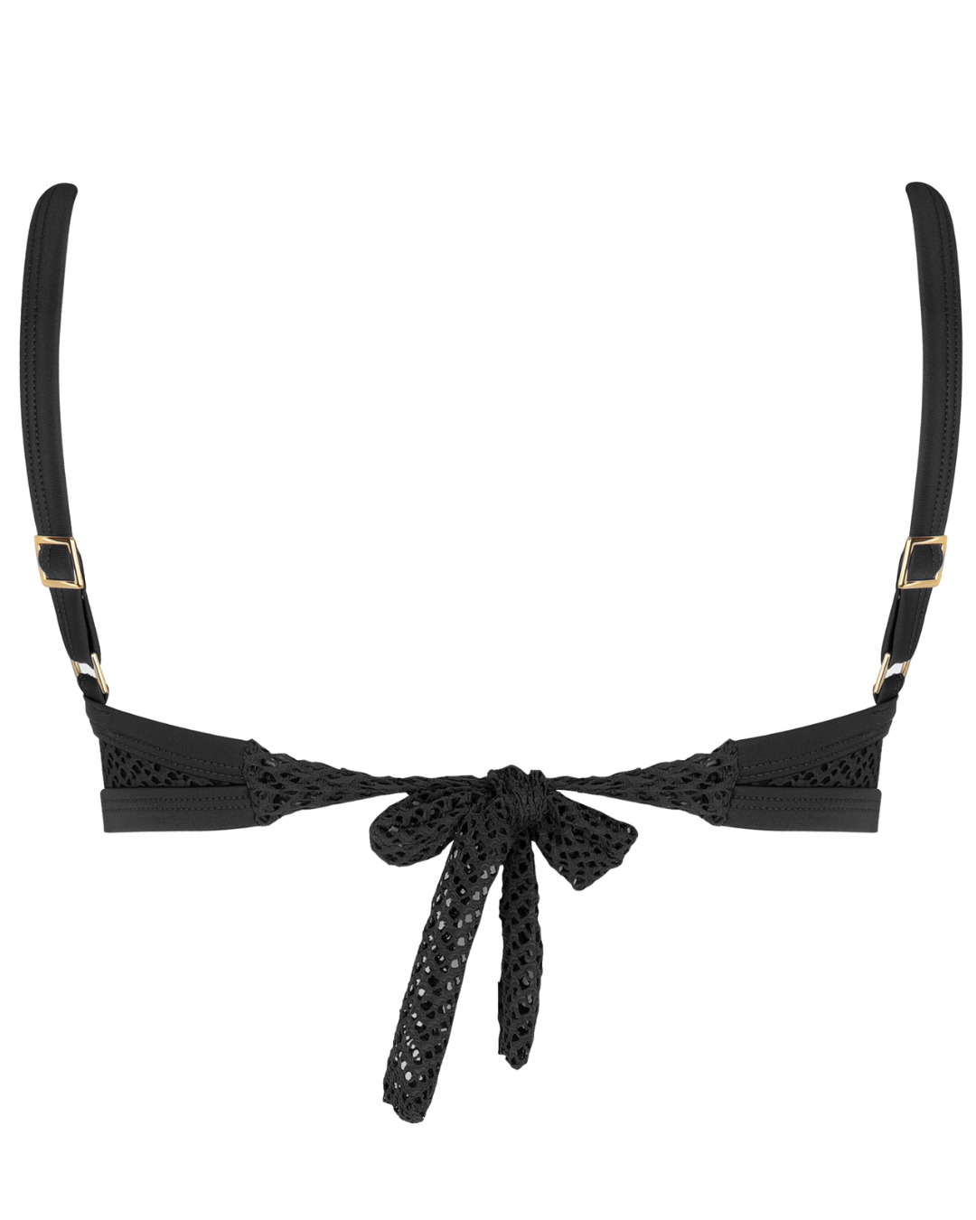 Top inteiro com a parte frontal menor, viés e alças reguláveis e finas.