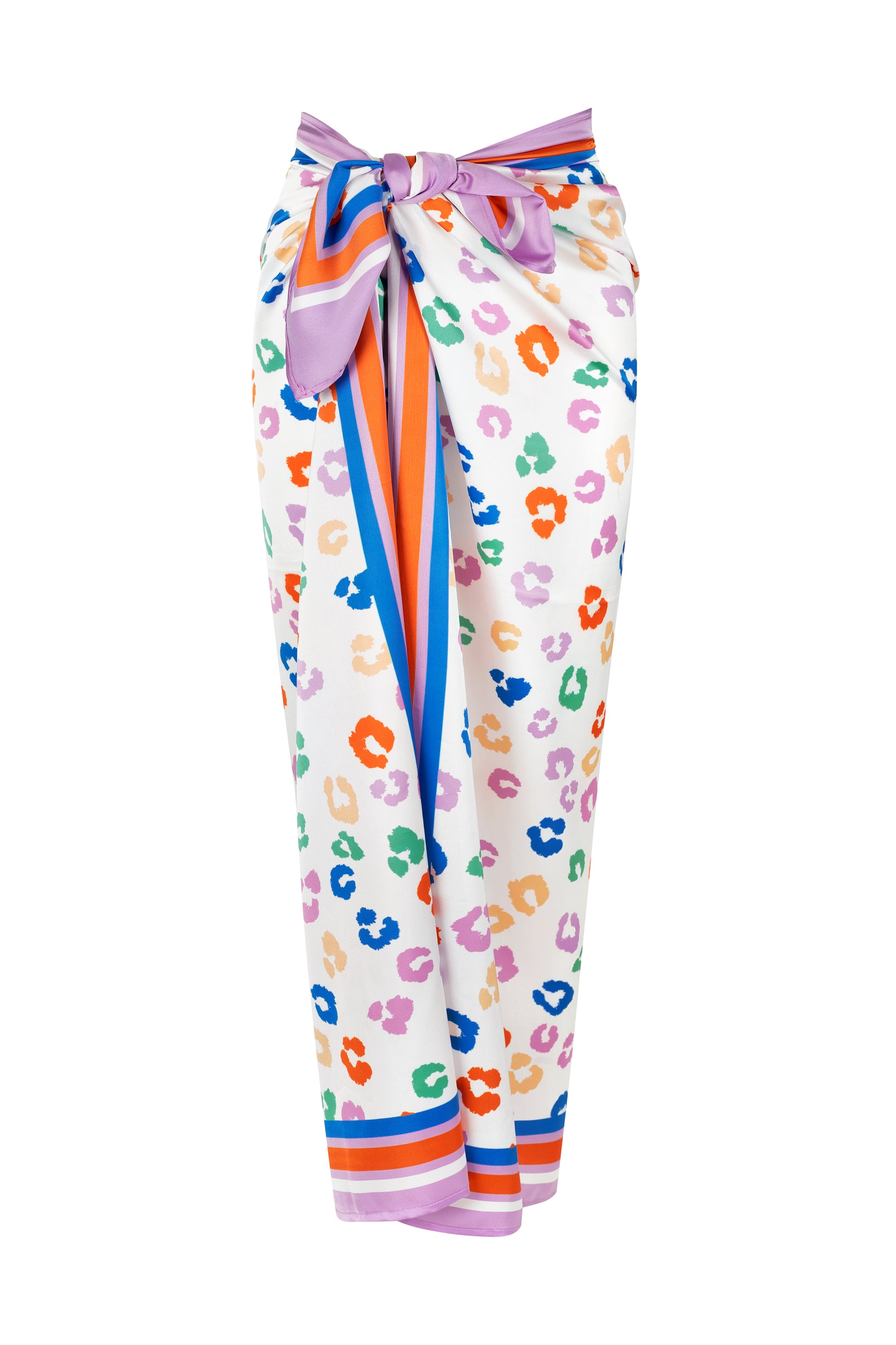 Lenço de praia que pode ser amarrado na cintura de várias formas.